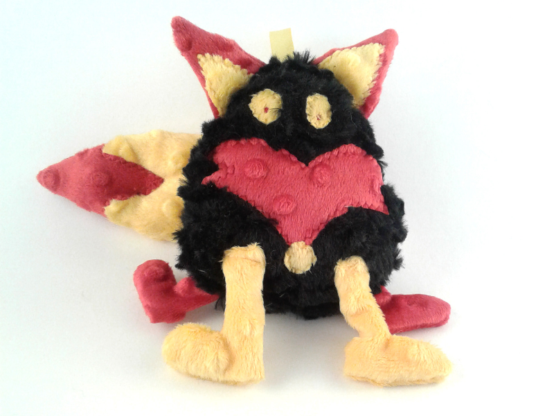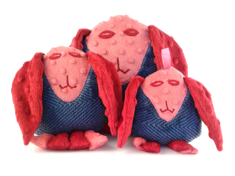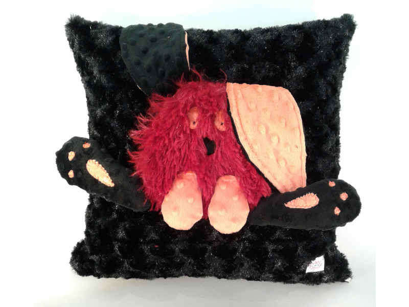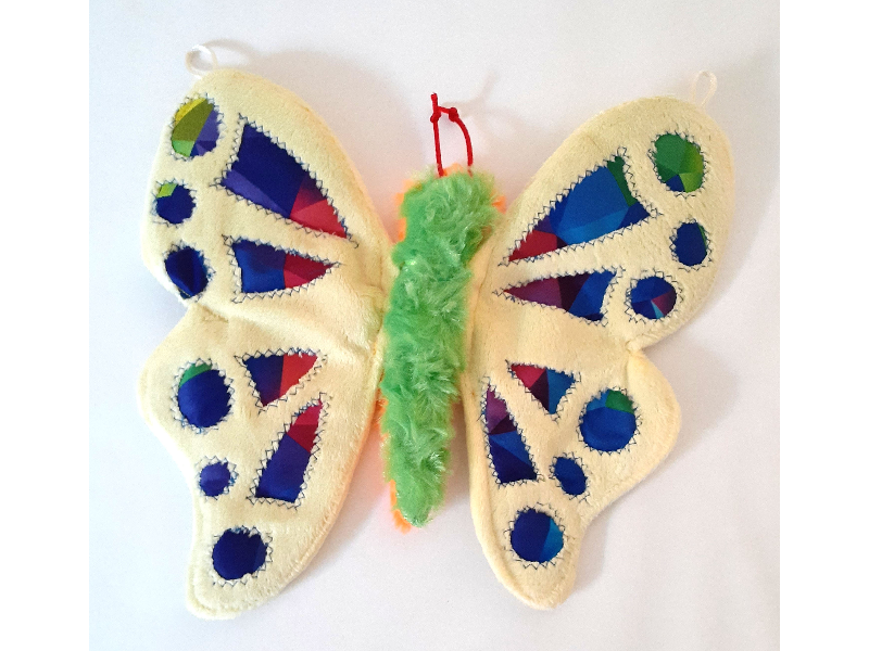 Uniquement les tissus doux aux couleurs vives sont retenus et agencés pour faire des mélanges joyeux et éclatants, afin de transmettre aux peluches mon bonheur de créer. Mes peluches prennent vie aussitôt que je commence à les tailler. Les tissus bougent, les couleurs me parlent, les ailes se déplacent, les yeux me regardent.
