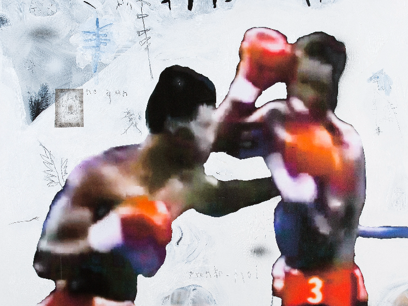 Mon approche de l’œuvre traduit une façon d’être et une manière de concevoir le réel autrement, dans une réalité aux prises avec de nombreuses et pressantes préoccupations politiques et économiques. Visuellement, je me sers de l’étendue massive d’internet et de sa surcharge d’informations. Je compose donc avec les tragédies et catastrophes réelles, un espace neutre et flou en y ajoutant de la transparence par superposition et effacement de couches, des lignes et un dessin dynamique directement gravé dans la peinture fraiche. Je recherche un équilibre tout en jouant avec une structure qui peut sembler déconstruite. En négligeant volontairement certaines traditions ou restrictions, j’adopte une façon de travailler lente et minutieuse afin de m’éloigner de l’inertie paralysante de notre époque. Ce travail devient guidé par le rapport entre les formes et surtout par l’émotion qui s’en dégage. Mes sujets sont tirés de l’homme dans son contexte réel et porte le spectateur à réfléchir sur les conditions de vie de l’homme contemporain.
