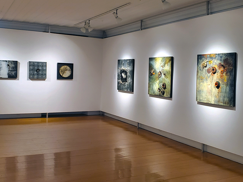 De vieux ressorts deviennent «DÉBÂCLE» au printemps, des éclats de verre suggèrent le miroitement d’un «ICEBERG», des brosses de polissage se transforment en fleurs de «NYMPHÉAS»… Chaque artefact recueilli porte en lui une mémoire, une histoire... J’aime détourner la matière de sa fonction d’origine afin de la sublimer et lui redonner un nouveau rôle plus actuel. Un morceau rouillé ne se fixe pas de la même façon que du verre, le bois ne se travaille pas comme de la porcelaine. Mes différentes techniques utilisant peinture, bois, métal, porcelaine, papier et textile m’amènent sur des pistes aussi étonnantes que variées . Soucieuse du moindre détail, les surfaces sur lesquelles ils sont apposés sont minutieusement peintes et texturées pour une intégration harmonieuse.