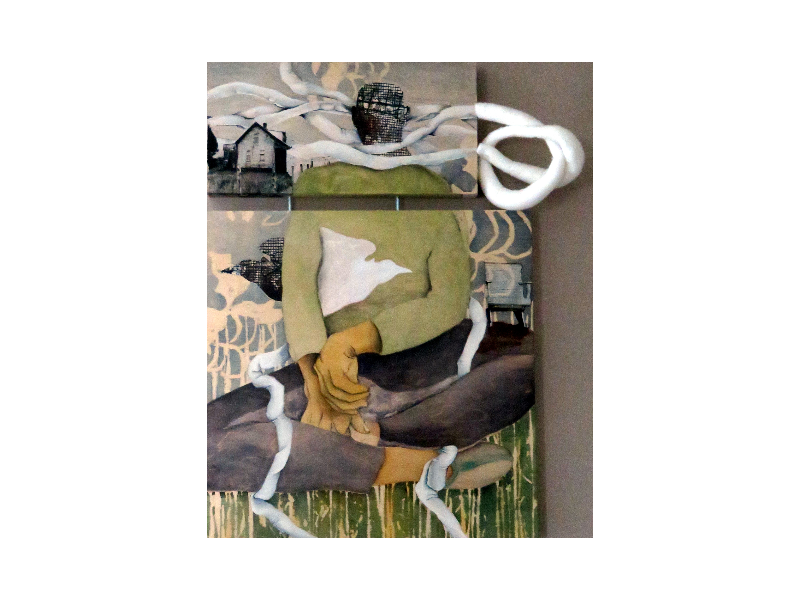 « Lorsque je fais un survol de ma pratique, il apparaît indéniablement que l’humain est au centre de ma recherche. »Je travaille en atelier, j’explore la technique mixte, m’intéresse à la broderie, la sculpture. J’aime explorer de nouvelles avenues afin de pousser ma pratique dans le faire autrement, cela pour cerner davantage le sujet.