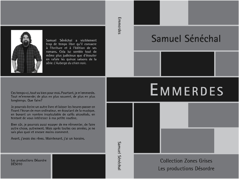 Deuxième volet de la Collection Zones Grises entamée en 2015 avec la publication de Figurations, ce roman autofictionnel met en scène un narrateur plein de sagesse (ou à peu près…) qui commence tranquillement à accepter son statut d’adulte expérimenté s’approchant dangereusement de la quarantaine. Malgré cela, il a toujours son petit côté baveux et cynique. Récit d’un automne mouvementé où tout aurait pu basculer, pour le meilleur ou pour le pire.