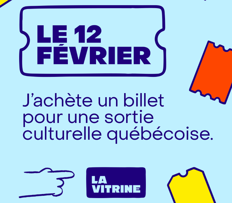 Montréal, le 22 janvier 2026 - La Vitrine annonce le retour de la journée Le 12 février, j’achète un billet pour une sortie culturelle québécoise, et lance une vaste campagne promotionnelle pour amplifier le mouvement collectif initié en 2025 par la cinéaste Myriam Verreault. Du 26 janvier au 12 février 2026, La Vitrine invite le public de toutes les régions du Québec à poser un geste simple, concret et porteur, celui d’acheter un billet pour une sortie culturelle d’ici.