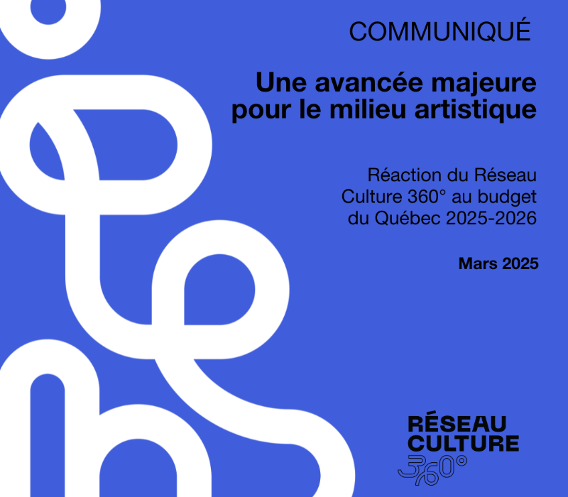 « Nous sommes heureux et fiers de constater que les revendications du milieu artistique ont réussi à se tailler une place dans le budget du Québec 2025-2026, malgré un contexte sociopolitique difficile. Nous célébrons cette victoire collective qui bénéficiera aux artistes et aux organismes artistiques de toutes les régions du Québec », soutient Julie Martineau, co-présidente du Réseau Culture 360°.
