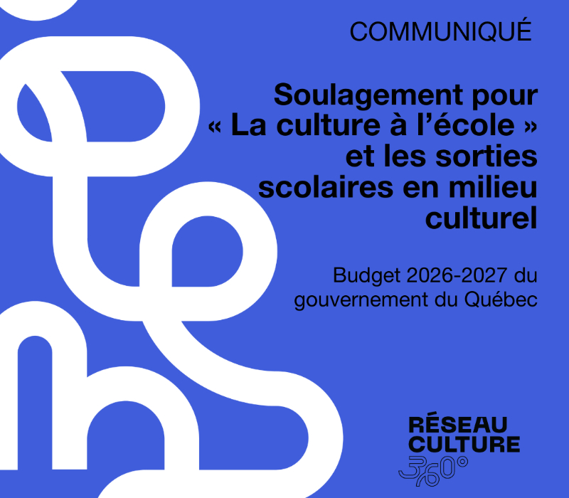 Mercredi 18 mars 2026 – Le Réseau Culture 360°, qui regroupe les 15 conseils régionaux de la culture du Québec dont Culture Mauricie, est soulagé de constater que le gouvernement du Québec renonce aux coupes envisagées dans le programme La culture à l’école et dans les sorties scolaires en milieu culturel, comme demandé par l’ensemble du milieu culturel. Par ailleurs, dans le contexte budgétaire actuel, le Réseau se réjouit de la bonification du financement des institutions muséales et de la consolidation du budget de la SODEC. Cependant, le Réseau constate l’absence de stratégies pour soutenir le financement privé en culture, de même que la stagnation du financement des conseils régionaux de la culture du Québec.