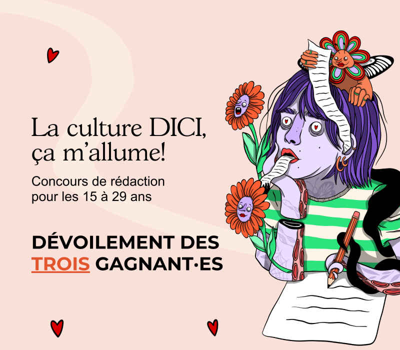 Trois-Rivières, le lundi 9 décembre 2024 — Le magazine culturel DICI.ca, une initiative de Culture Mauricie, est fier de dévoiler les trois lauréat·es de son concours de rédaction « La culture DICI, ça m’allume! » destiné aux mauricien·nes âgé·es entre 15 et 29 ans. Le concours a connu un engouement extraordinaire avec un nombre total de 75 textes soumis par des jeunes de toutes les régions de la Mauricie. Plus de 1000 personnes du public ont voté pour leurs 3 coups de coeur parmi les 9 finalistes déterminé·es par un jury composé d’écrivain·es, de professeur·es et/ou de travailleur·euses culturel·les.