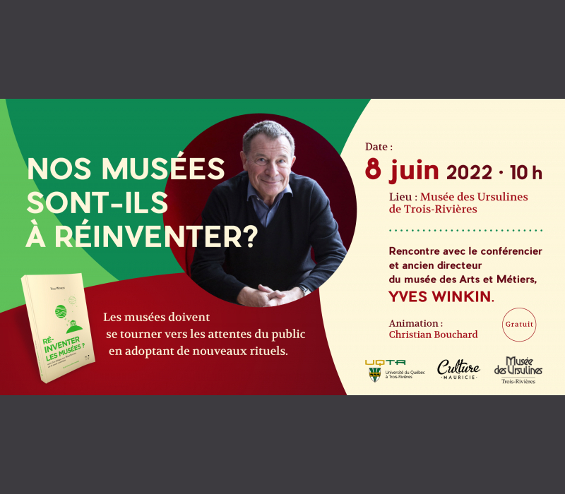 Culture Mauricie et l’Université du Québec à Trois-Rivières vous invitent à assister à un entretien avec Yves Winkin, conférencier et ancien directeur du musée des Arts et Métiers qui présentera les thèses exposées dans son récent essai « Réinventer les musées? ». La présentation sera suivie d’un échange avec l’auditoire.