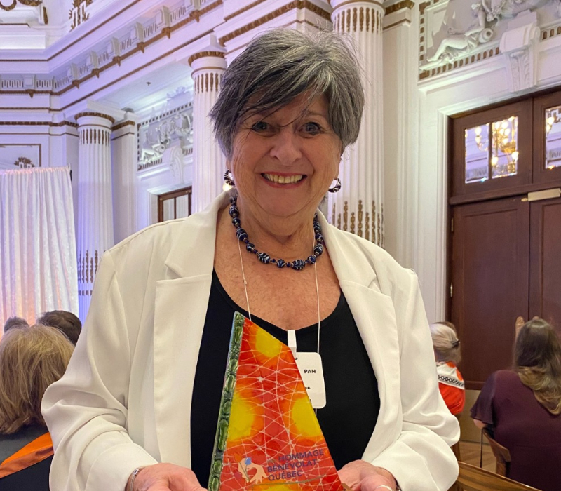 La présidente du conseil d’administration de Culture Trois-Rivières, Stella Montreuil, a été honorée le 16 avril dernier à l’Assemblée nationale du Québec par la remise du prix Hommage bénévolat-Québec, en reconnaissance de son dévouement envers le milieu culturel de la Mauricie et de ses implications qui ont contribué à enrichir le milieu.